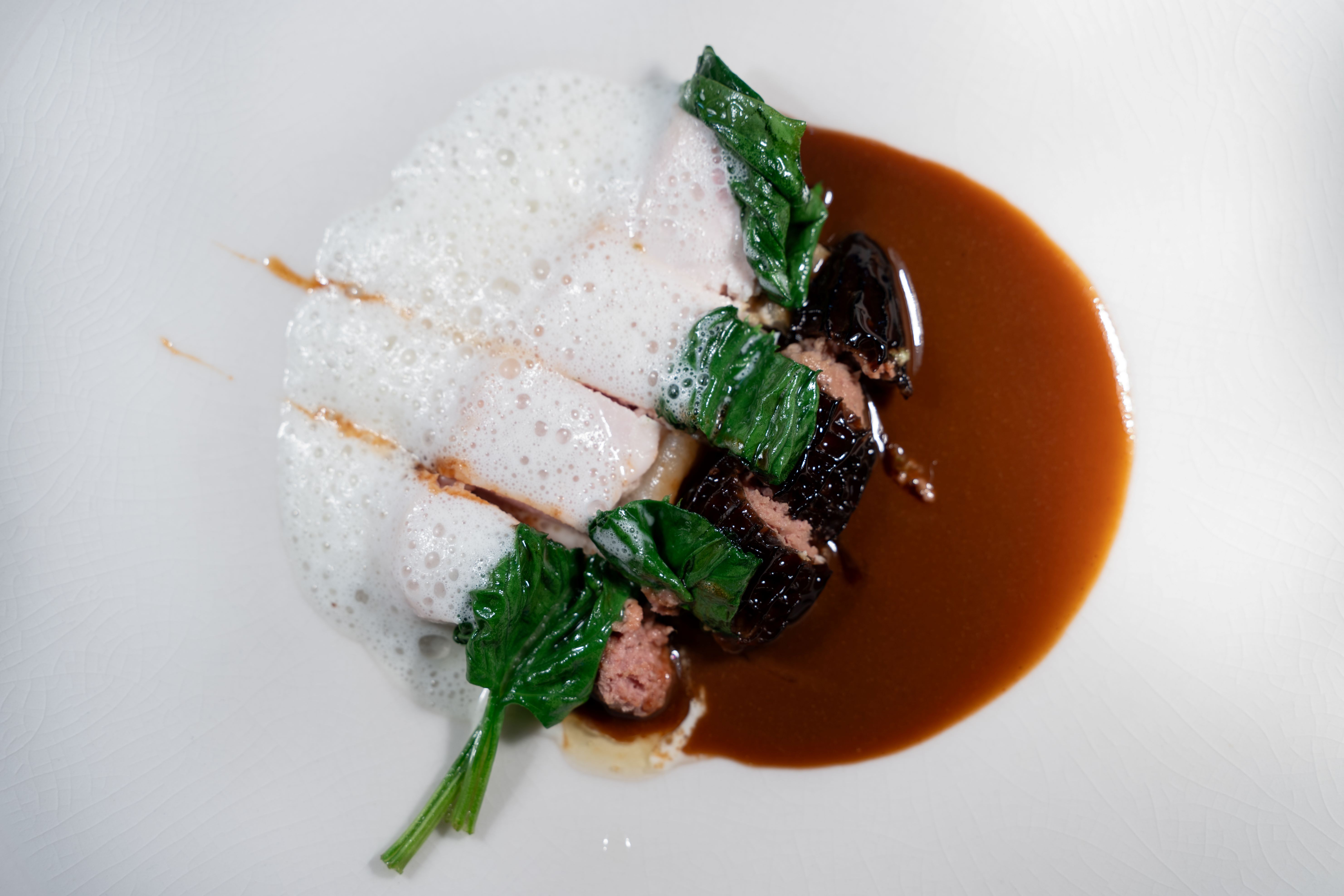 Je suis effectivement un grand fan de pâté en croûte, que je sers d’ailleurs régulièrement en amuse-bouche en version mini. Dans ma recette signature, il y a des gésiers de volaille confits, de la poitrine et du filet mignon de porc Duroc, des trompettes de la mort, du confit doignon, de la peau de poulet rôti et de la gelée de bœuf AngusDepuis la réouverture du restaurant, on offre aussi aux clients la possibilité de les commander cinq jours à l’avance pour les déguster chez eux. Et la demande a tellement explosé pendant les fêtes de fin dannée quon vient tout juste de décider de lancer une page sur notre site internet, consacrée à la commande. C’est beaucoup de boulot supplémentaire, mais je ne me vois pas arrêter de préparer du pâté en croûte à mes heures perdues. C’est un produit millimétré, qui demande beaucoup de régularité et de constance, un peu comme la pâtisserie, une discipline que j’adore aussi.