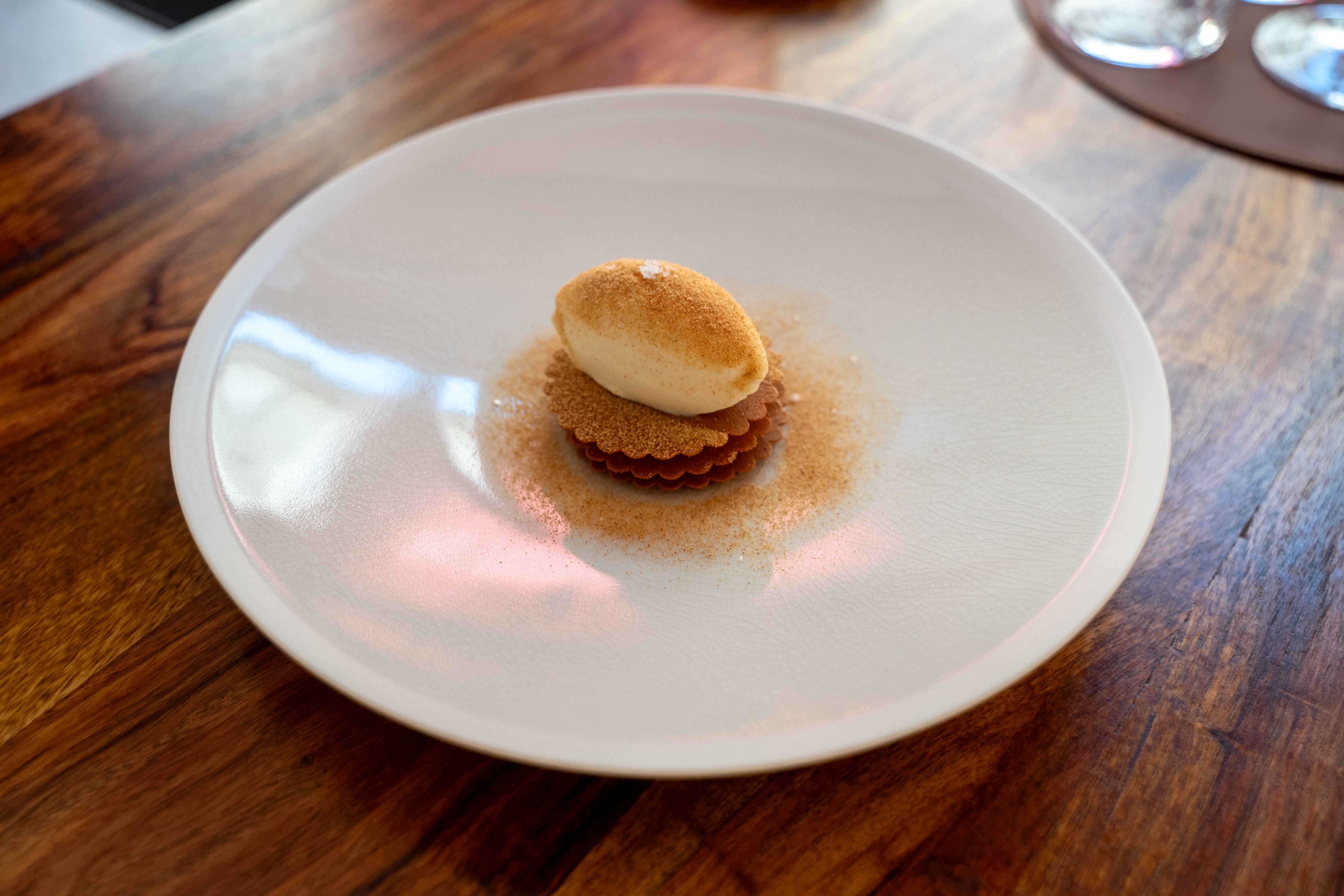 Pour améliorer ma technique, je me réfère toujours au Répertoire de Recettes de Jean-François Piège (Hachette cuisine, 2023) qui est, à mon sens, une référence. Pour stimuler ma créativité, je me plonge dans d’autres livres de cuisine et dans mon fil Instagram. Je vois d’autres chefs faire et je m’en nourris. Récemment, par exemple, j’en ai vu quelques-uns travailler le sumac. Ça m’a inspiré un plat associant sumac, betterave rouge réduite comme un vin assaisonné à la cannelle et aux écorces d’orange séchées, caillé de Jersiaise mousseux et fleurs sauvages séchées.