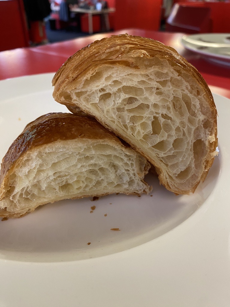 Peu de place au doute : le croissant est bel et bien réussi. Au visuel, on tient un croissant bien régulier, une forme traditionnelle et bombée. Une dorure uniforme qui tire vers le caramel, un feuilletage aéré et bien alvéolé qui parfait l'esthétique de la viennoiserie. Côté goût, le croissant est bien moelleux, réconfortant à souhait grâce à des notes de beurre prononcées.