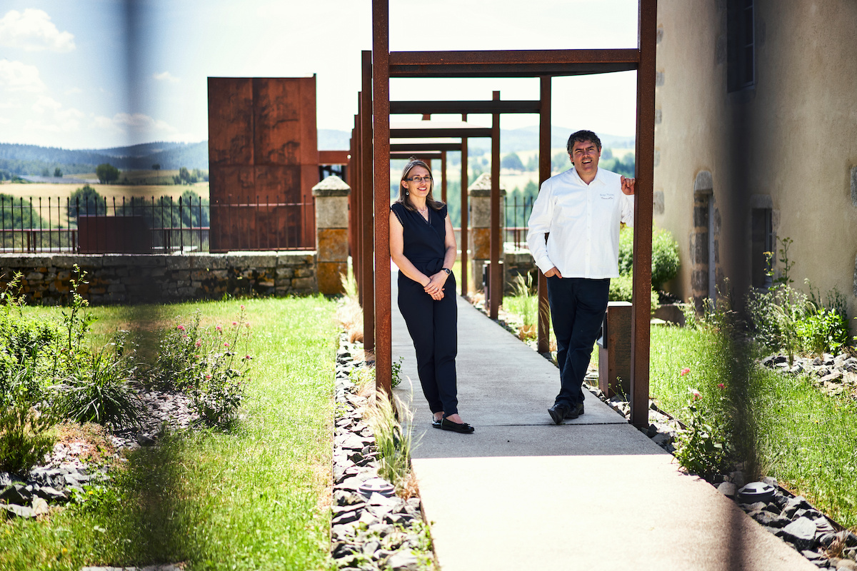 Là où on parlerait de regret, la saudade dit la nostalgie de quelque chose qui n’a pas encore eu lieu, ou qui n’arrivera peut-être jamais. Pour cause de plafonds de verre à tiroirs, et de temps qui écrase, d’autant plus en cuisine, et fait grandir encore plus vite les enfants. Des sujets que Serge abordait bien vite une fois la confiance établie sans crier gare. Un goût, un talent pour la rencontre, de préférence sur ce territoire qu’il donnait à manger depuis son coup de cœur, avec sa femme, pour cette terre d’herbe grasse, d’eaux chaudes mais aussi de froid et de brumes, comme celles qui enchâssaient le Couffour quand ils l’ont visité en 2009. Le bâtiment historique n’étant pas exploitable, ils mettent toute leur énergie (et leurs économies) dans ce projet troglodyte, avec cheminement de lignes entrecroisées en cortène, cet alliage qui rouille sans se détériorer. Comme ce couple avec Marie-Aude, grâce à qui habitués, foodies, mais aussi ceux qui viennent de casser leur livret A ou à qui on a offert un bon cadeau, se sentaient bien vite « à leur place ».