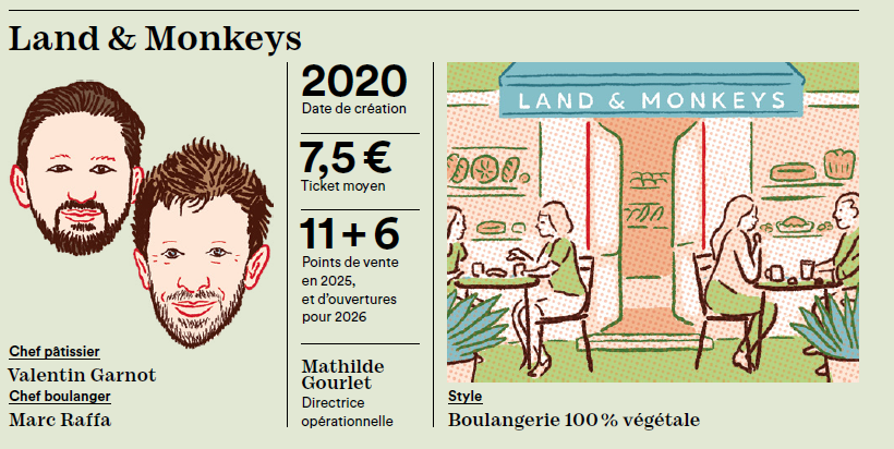 Cette marque n’est désormais plus la seule que le groupe fait grandir. Depuis près de cinq ans, celui qui se décrit comme un « citoyen entrepreneur » a choisi d’aligner ses valeurs avec son activité au travers de Land & Monkeys. Cette « boulangerie à impact positif » propose une offre 100 % végétale, à contre-courant des traditions boulangères françaises, où les produits carnés tiennent une place fondamentale. « Construire une seconde enseigne était un choix naturel. Non seulement il n’était pas envisageable de détruire nos racines et de convertir l’ensemble du réseau du jour au lendemain, mais nous souhaitons proposer le végétal sans l’imposer, ce qui me semble plus élégant et éthique », défend Rodolphe Landemaine.