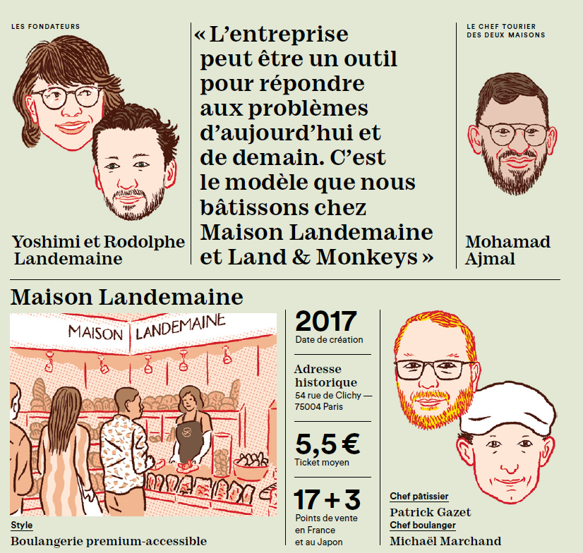 Cette réussite entrepreneuriale, déjà prouvée au travers de 11 points de vente entre Paris, Bordeaux et Aix-en-Provence est doublement mise au service du vivant : en plus d’agir sur les sujets sous-jacents par la conception des produits, Land & Monkeys compte parmi ses actionnaires un fonds de dotation, baptisé Demain sur Terre, qui soutient des associations mais aussi rachète des terres afin de les sanctuariser et régénérer les écosystèmes. « L’entreprise peut être un outil pour répondre aux problèmes d’aujourd’hui et de demain. Elle peut avoir un autre visage et prendre ses responsabilités aux côtés des citoyens. C’est le modèle que nous bâtissons chez Maison Landemaine et Land & Monkeys », conclut ce boulanger résolument engagé au service du vivant.